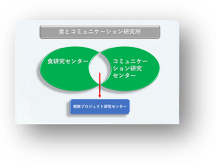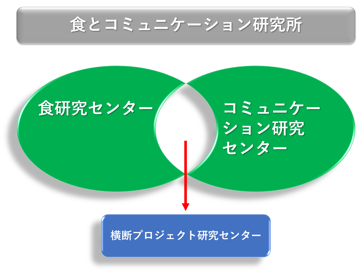 食とコミュニケーション研究所は、食研究センター、コミュニケーション研究センター、横断プロジェクト研究センターの3つのセンターで組織されそれぞれが研究を推進しています。