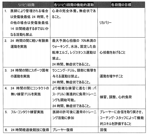 (International Rugby Board 競技復帰ガイドライン,2011)