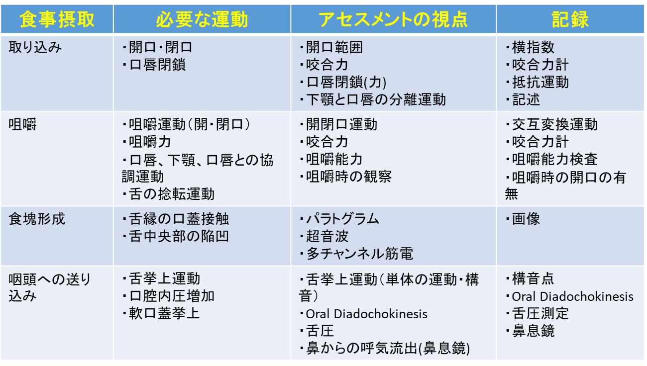 表2 食事を摂取するときの各段階で必要な口腔運動とアセスメント