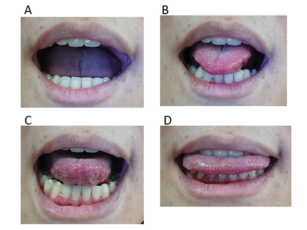 図1に示す写真は健常の方がモデルですが,「舌を前に出してください」とお願いしたときの様々な出し方のパタンを示しています.正常パタンはCです.A, B,Dはそれぞれ運動する際に何らかの課題があります.まず,現象を正確に分析し課題を抽出します.その課題に対してアプローチし,より正確な発音を促すこと,安全で安心した食事の摂取を保障することが言語聴覚士をはじめとする専門職の役割です.