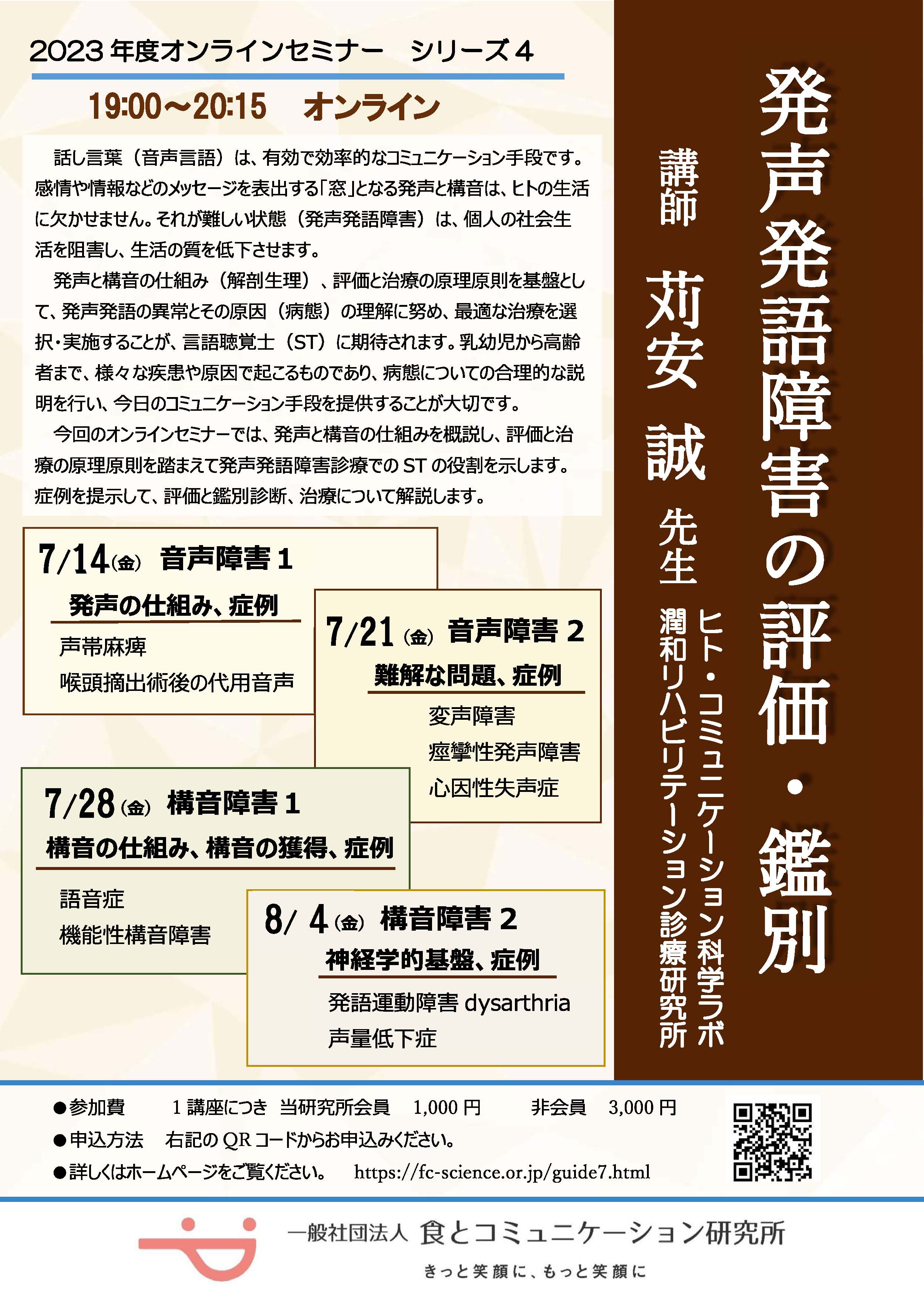 今回のオンラインセミナーでは、発声と構音の仕組みを概説し、評価と治療の原理原則を踏まえて発声発語障害診療でのSTの役割を示します。症例を提示して、評価と鑑別診断、治療について解説します。
