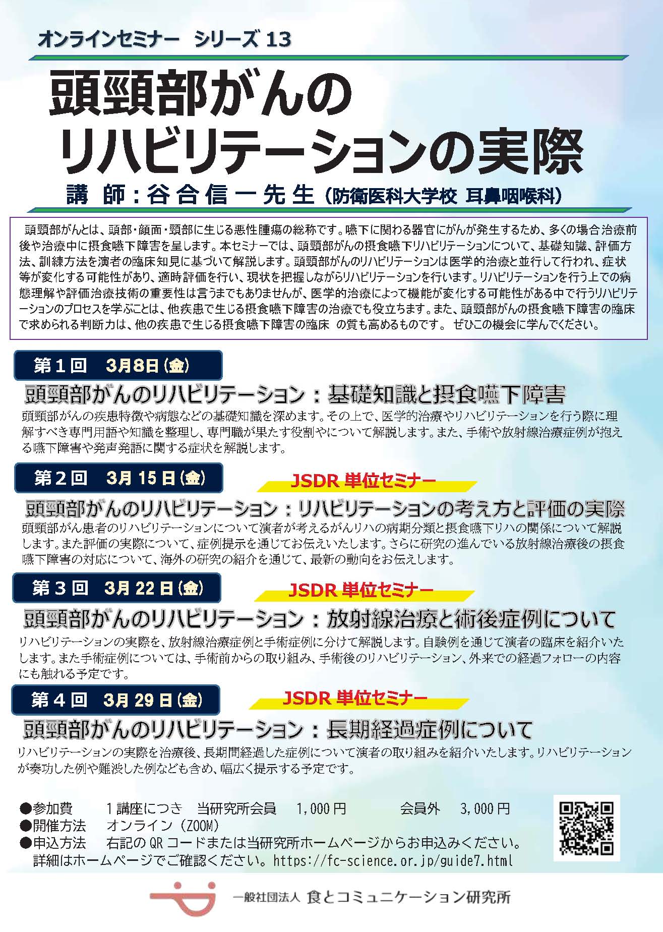 ■日本摂食嚥下リハビリテーション学会(JSDR)認定士単位セミナーの対象講座です。