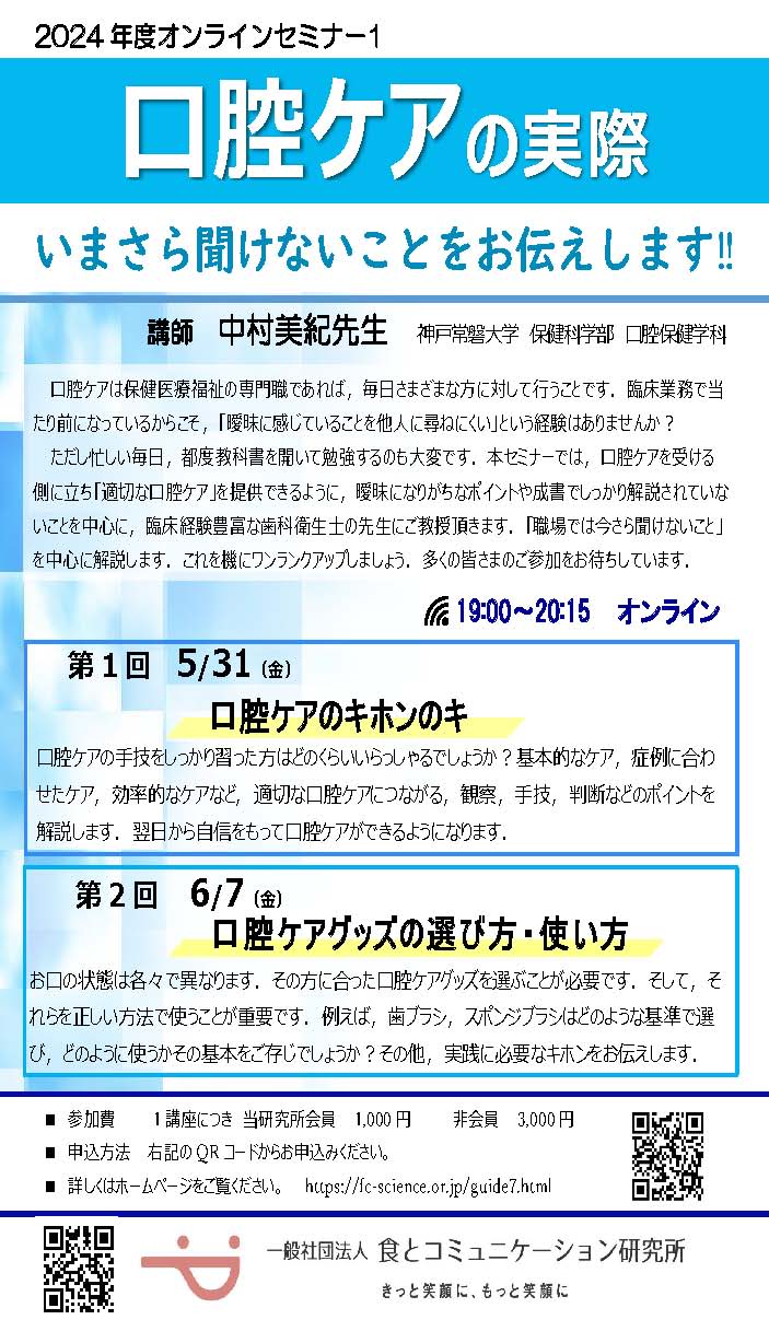 「口腔ケアの実際 いまさら聞けないことをお伝えします!!」全2回