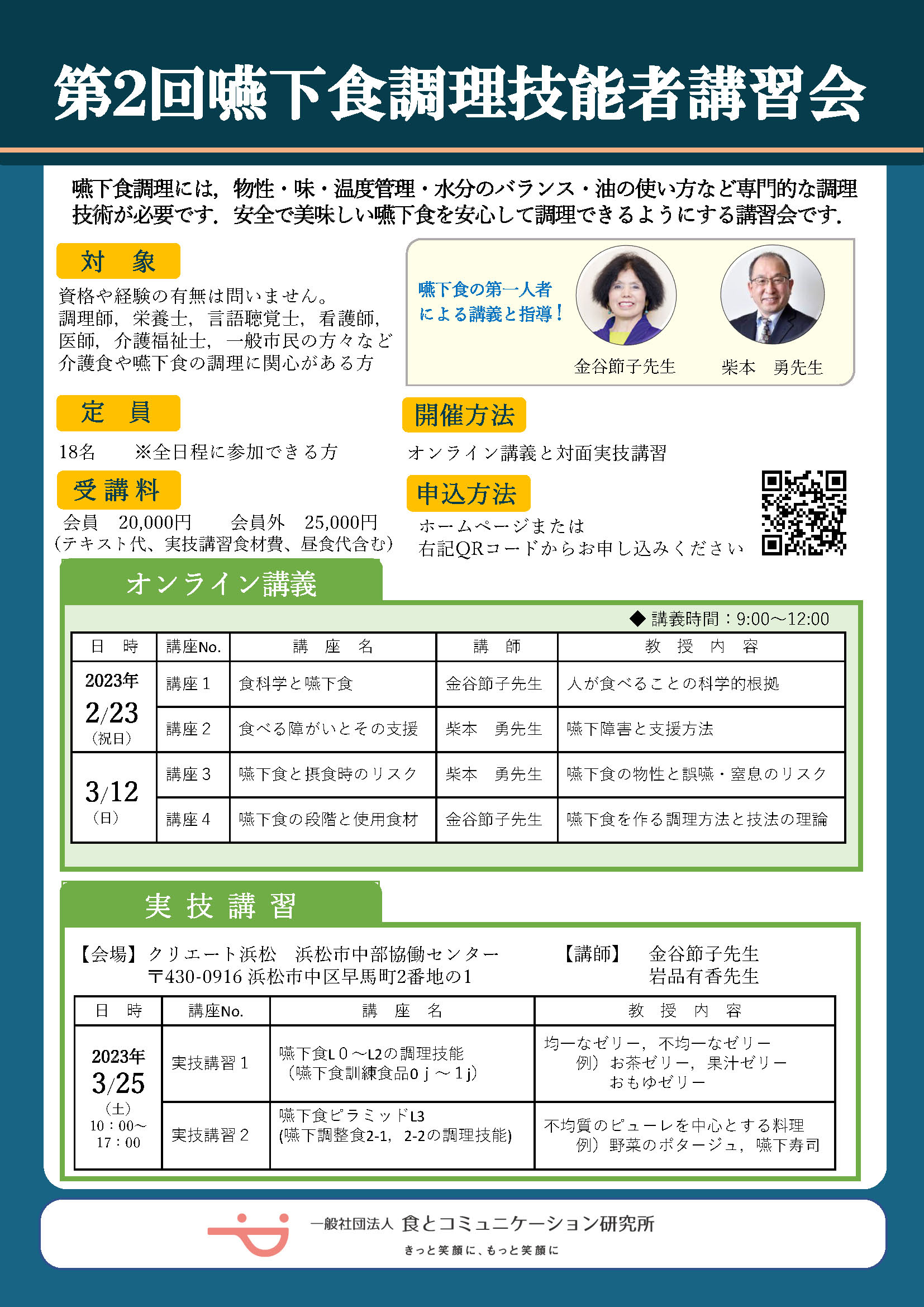 食とコミュニケーション研究所では,『嚥下食調理技能者』を育成することを目的に,講習会を開催します.